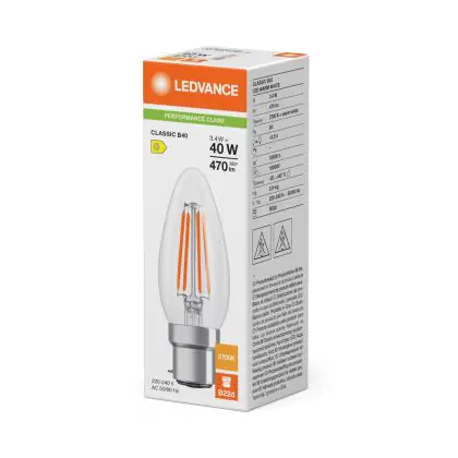 Ledvance Classic LED B22 Kaars Filament Helder 3.4W 470lm - 827 Zeer Warm Wit | Vervangt 40W
