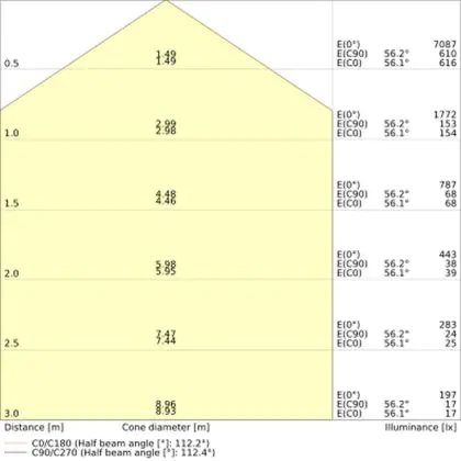 De lichtopbrengst (Lumen), geeft weer hoe krachtig het uitgestraalde licht is. Dit is belangrijk om te weten om de juiste sfeer te creëren. 0 tot 400 Lumen is bij uitstek geschikt voor accent- of sfeerverlichting. Een hoger aantal Lumen is, afhankelijk van de grootte van de ruimte, beter geschikt als ondersteunende- of basisverlichting. Heb je plafonds hoger dan 4 meter, dan is een lichtopbrengst van minimaal 8000lm aan te raden indien heldere verliching gewenst is (vb. in werkomgevingen).