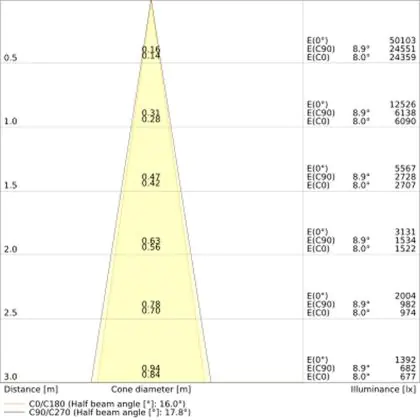 De gradenbundel geeft informatie over hoe breed het licht wordt uitgestraald. Dit zit tussen de 0 en 360 graden (D). Hoe kleiner de hoek, hoe specifieker de lichtbundel is. Over het algemeen is een smalle gradenbundel perfect voor sfeer- of accentverlichting, terwijl een brede gradenbundel ideaal is om grote oppervlaktes te verlichten.