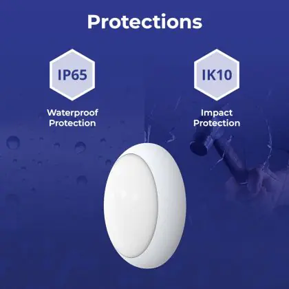 De IK waarde staat voor de slagvastheid en bescherming tegen vandalisme. Dit wordt uitgedrukt in combinatie met 2 cijfers (IK00 - IK10). Producten met IK00 zijn niet beschermd tegen weerstand, terwijl producten met IK10 weerstand bieden tegen schokken van 20 Joule en tevens vandaalbestendig zijn. |